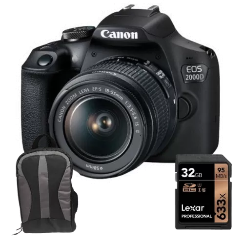 Canon EOS 2000D 18-55mm Lensli Fotoğraf Makinesi (32GB Hafıza Kartı + Sırt Çantası Hediye)