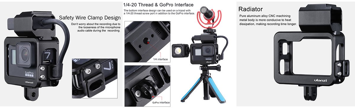 - Ürün Gopro Hero 5-6-7 Black ile uyumlu kameranıza mikrofon ve ışık gibi aksesuarlar bağlamanız için kullanılan bir çerçevedir.